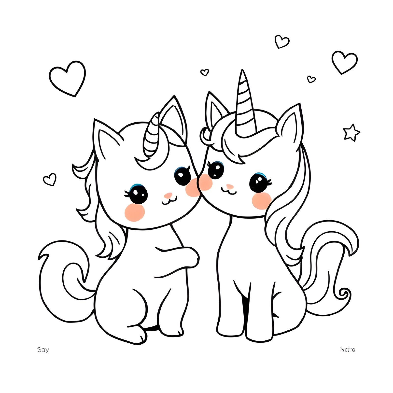 Un dessin de Deux licornes, câest une image qui montre deux amis magiques qui se promĂšnent, jouent ou volent ensemble dans un univers fĂ©erique. On peut imaginer :